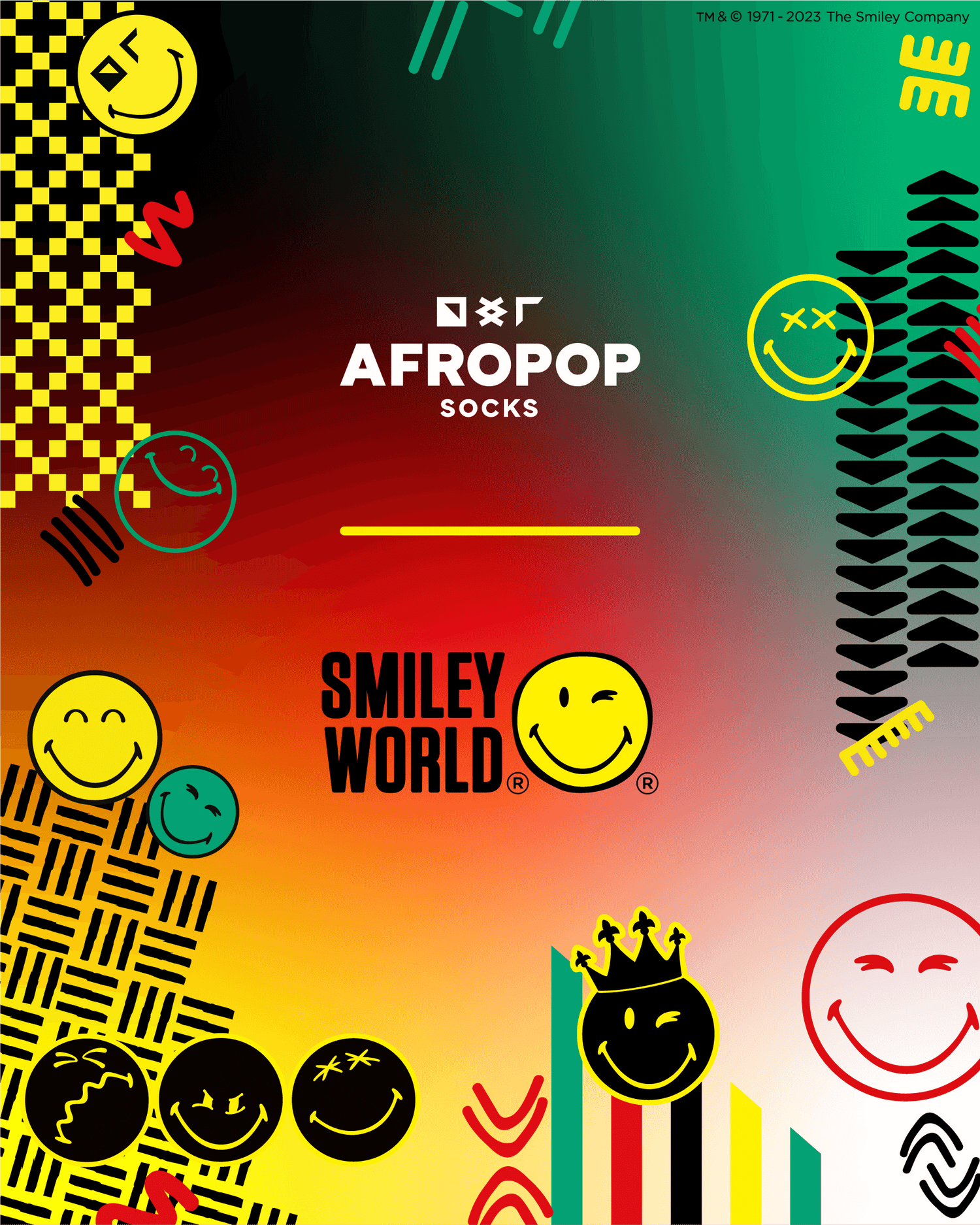 Step into the world of AFROPOP SOCKS and SMILEYWORLD®, where traditional African patterns and modern pop culture smileys collide in a colourful explosion of style and expression!