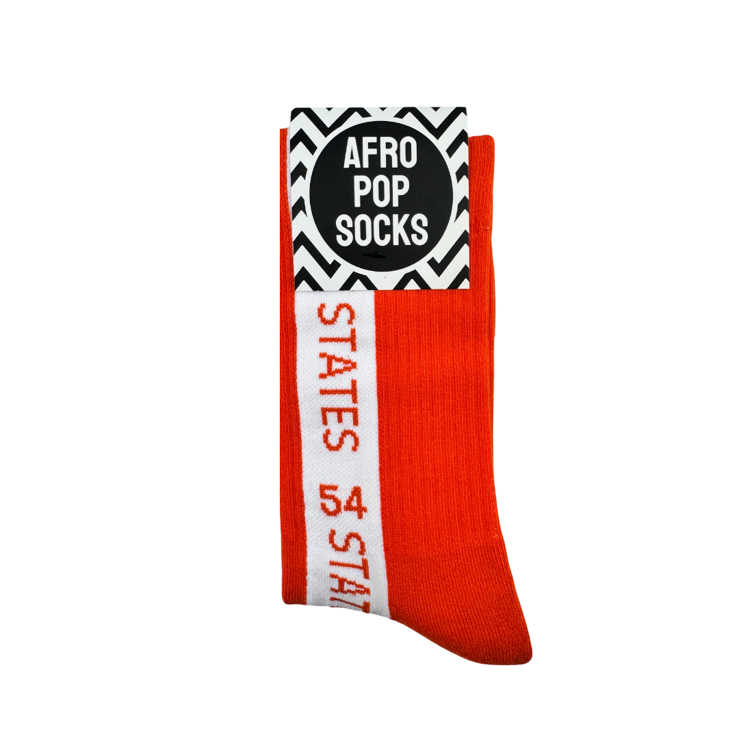 54 States Branded Sports Socks – Bright Orange & White | Celebrate Africa in Every Step