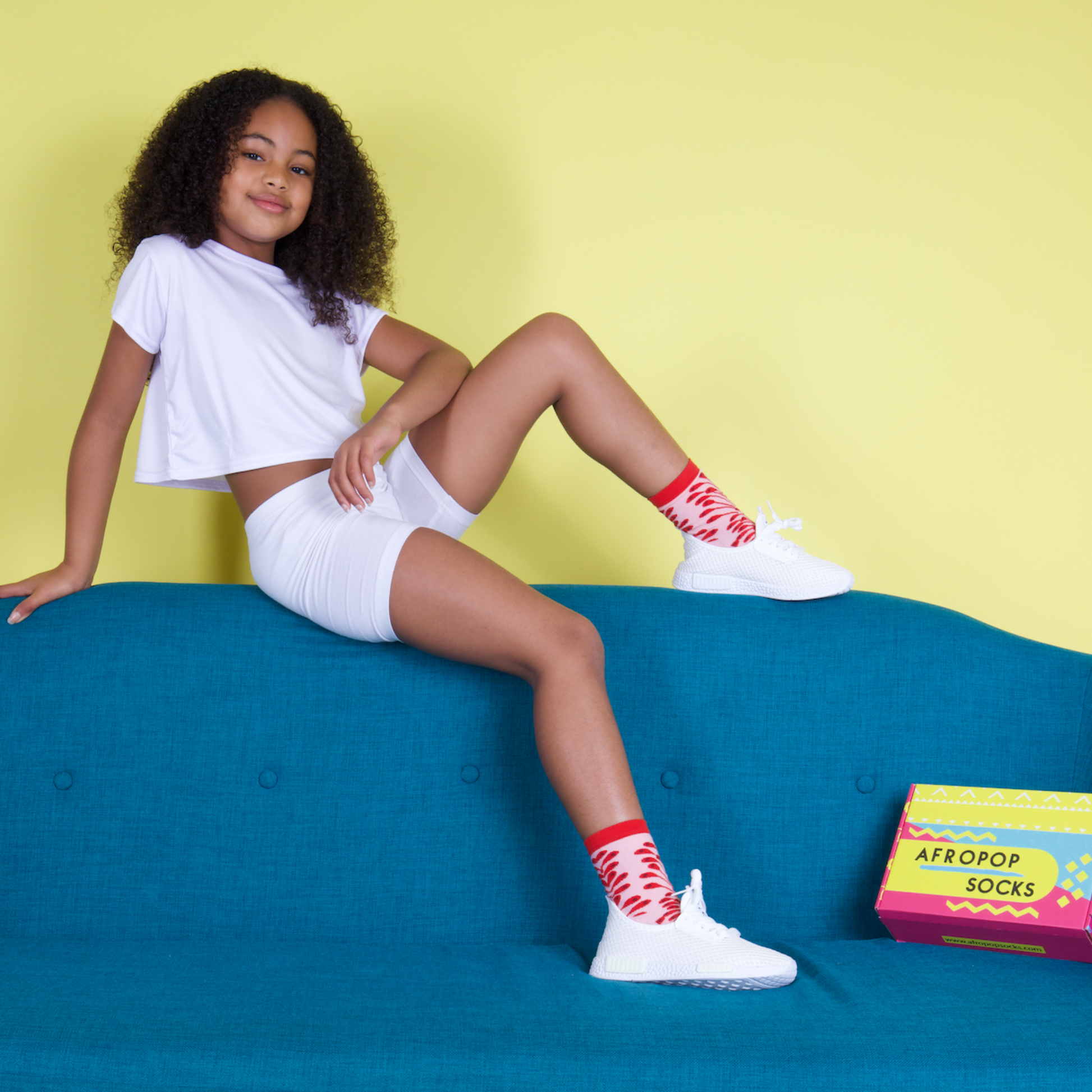 Afropop Socks are made with a combed cotton blend making them soft and durable.