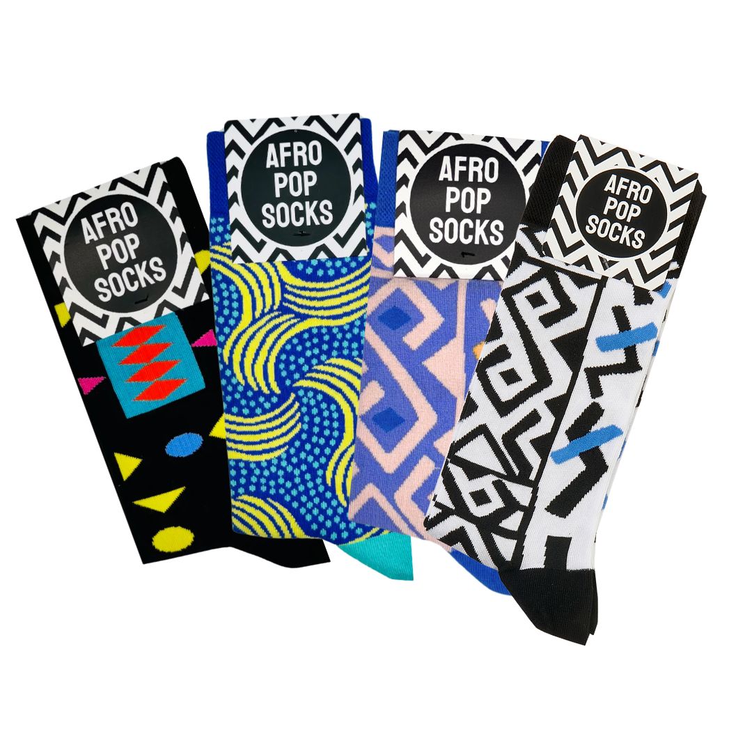 Afropop Socks are made with a combed cotton blend making them soft and durable.